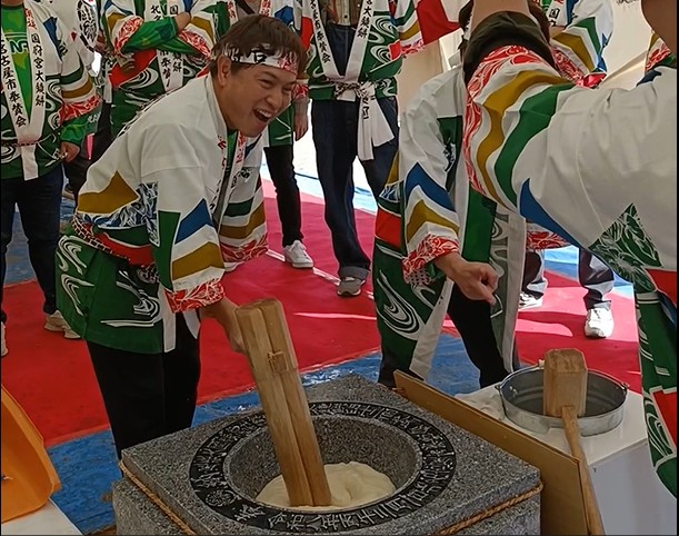 呼吸を合わせて杵を振り下ろす姿に、周囲からは大きな掛け声が上がり、会場は一層の盛り上がりを見せました。